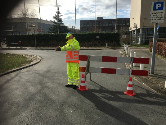Beveiliging B.V. levert ook verkeersregelaars en afzetting.